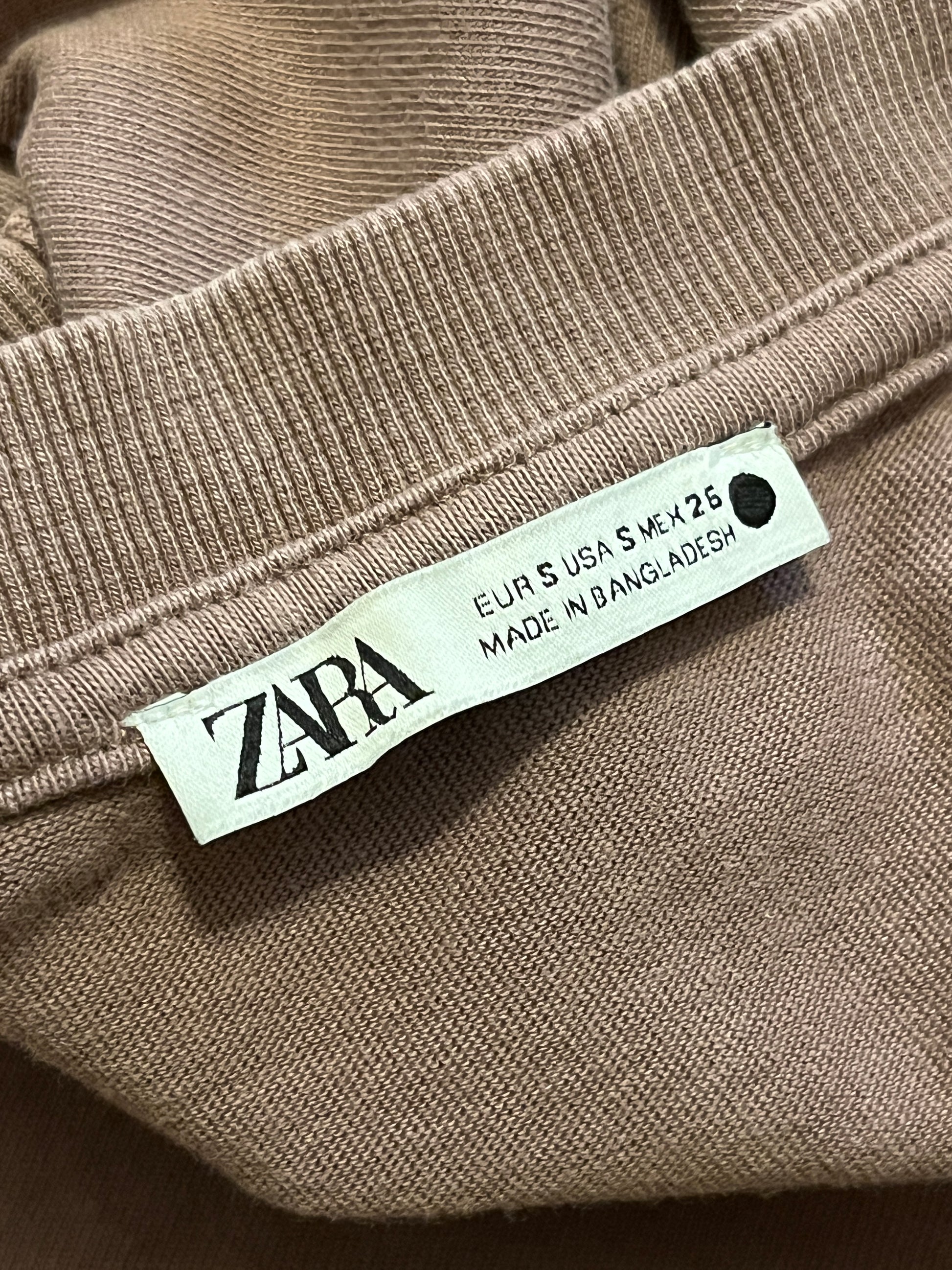 This one-of-a-kind Zara women’s T-shirt has been hand-customized for a lived-in, authentic look. Originally garment-dyed for a soft, vintage tone, it’s been bleach-treated by hand to create unique fading and distress details — no two pieces are the same.